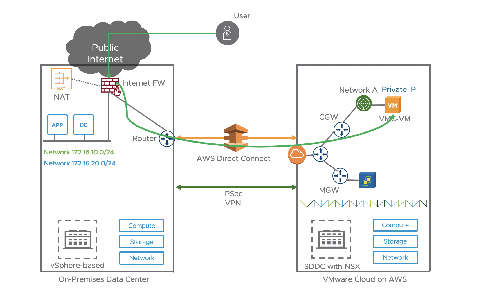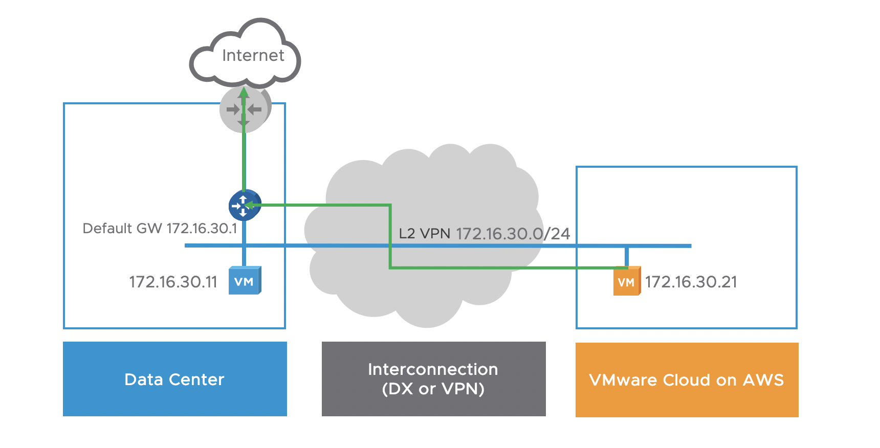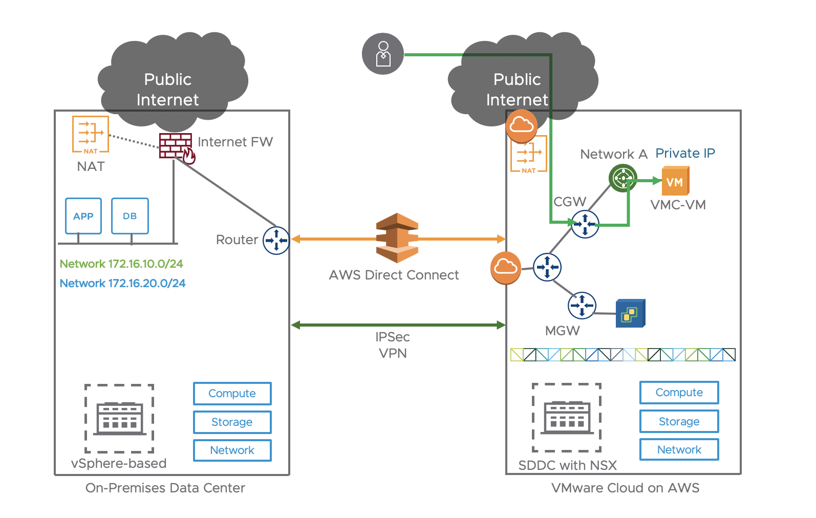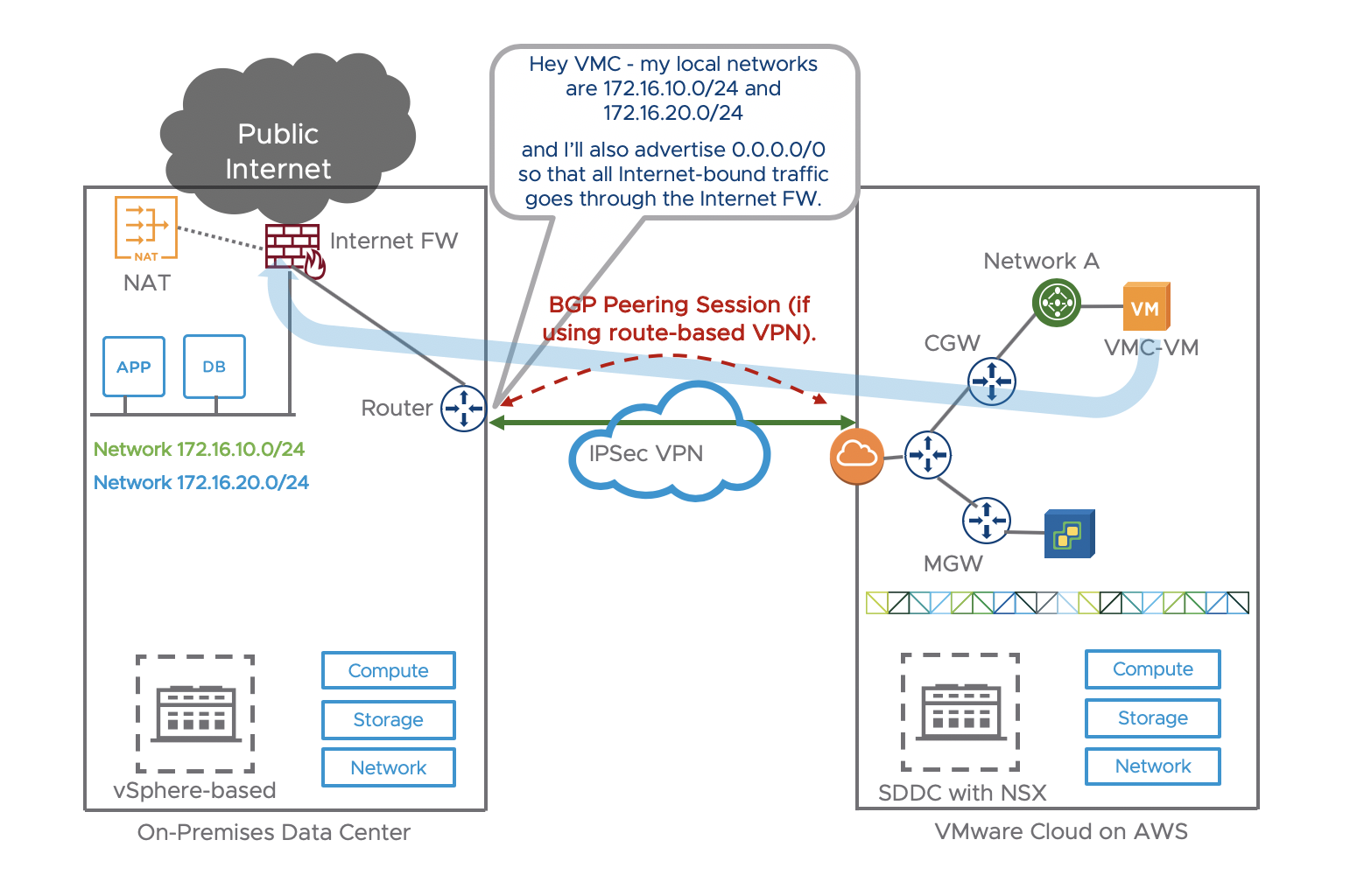 The majority of our customers maintain an on-premises presence even when they adopt VMware Cloud on AWS. We often have the scenario where customers want to traffic to route in and out of their on-prem Internet firewalls, because they prefer to leverage their existing proxy and firewalls.