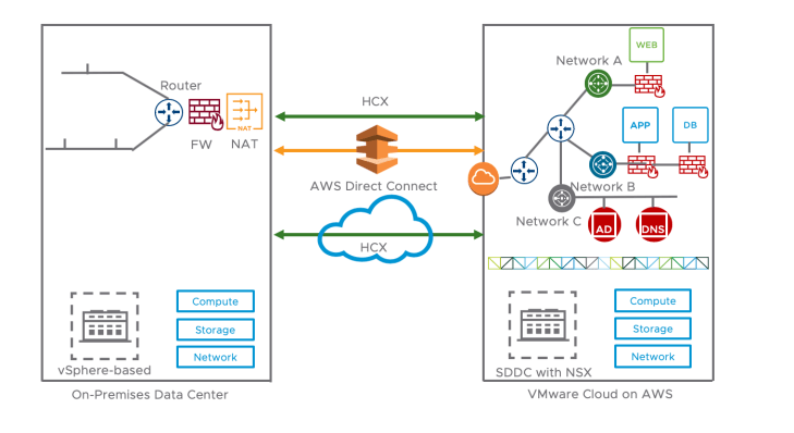 In this scenario depicted above, we are migrating every single application to VMware Cloud on AWS. Common services such as Active Directory and DNS are moved across to the Cloud.