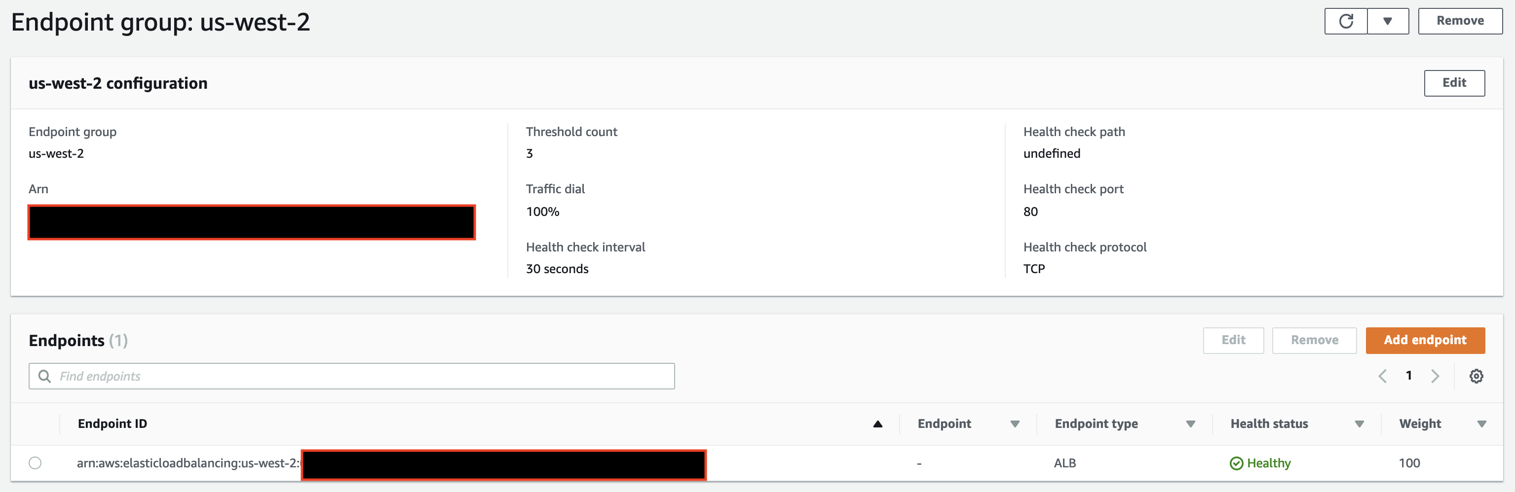 When I create the Global Accelerator, I added the Oregon Network Load Balancer and Frankfurt Network Load Balancer as my endpoints and the Global Accelerator forwards the traffic from the users to their closest location.