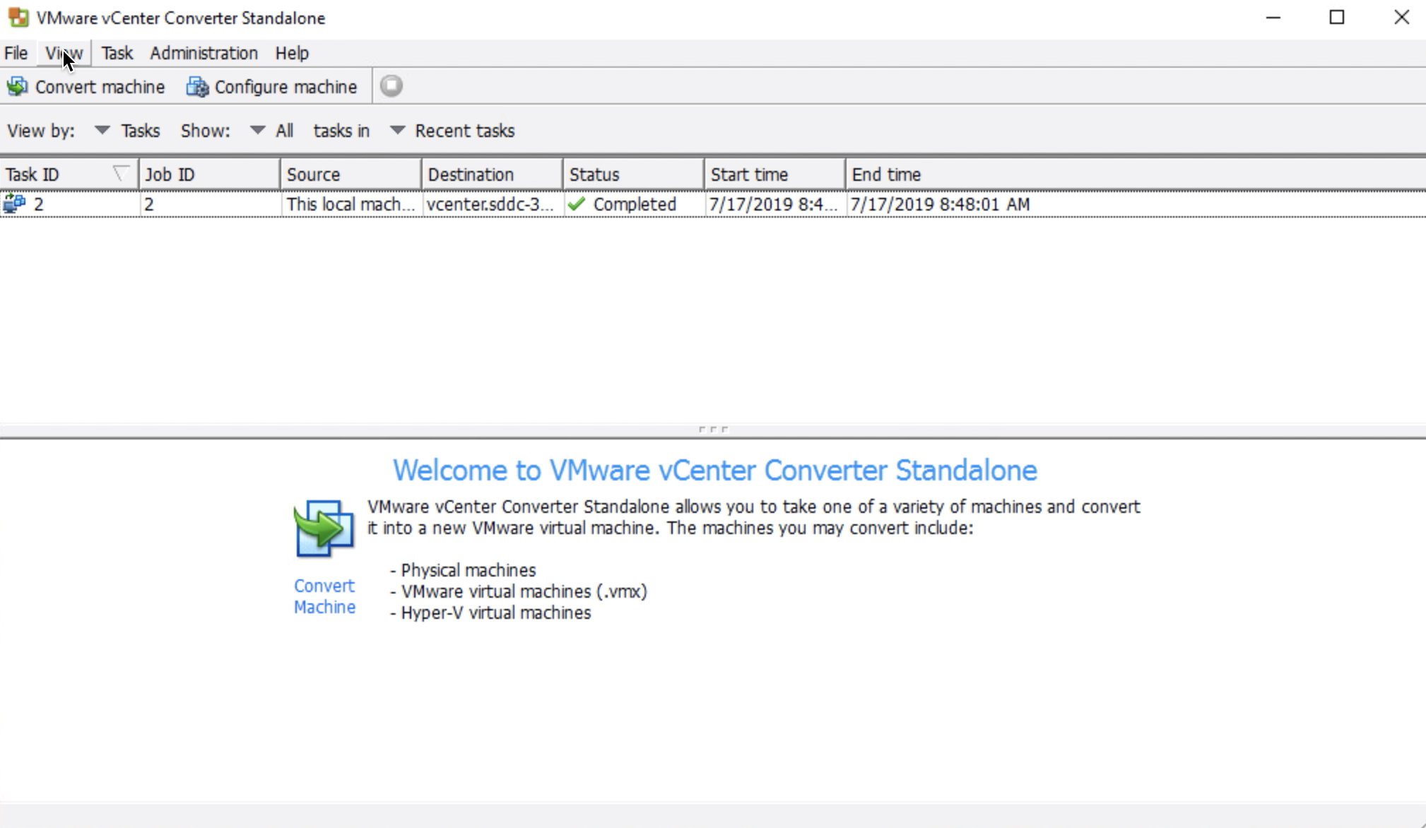 For the non-initiated, vCenter Converter has been around for a long time to do P2V (Physical-To-Virtual) migration and V2V (Virtual-to-Virtual) but this is still a perfectly valid option for a migration to VMware Cloud on AWS.