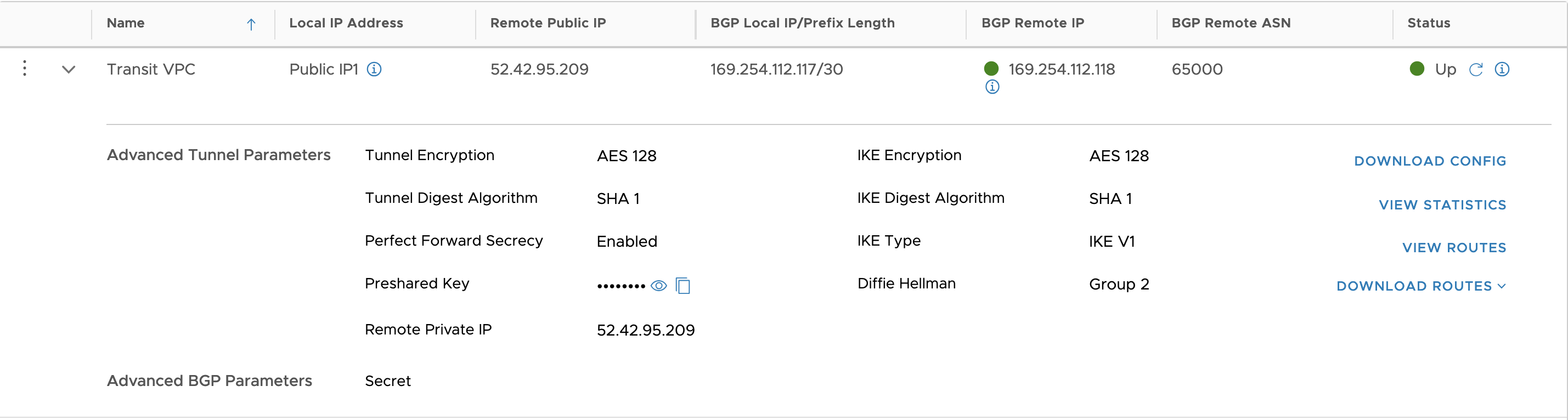 I will show the matching configuration of VMware Cloud on AWS on the picture gallery further below if you want to use the GUI instead (you can also read the document as the configuration described for AWS VGW also works with VMware Cloud on AWS).