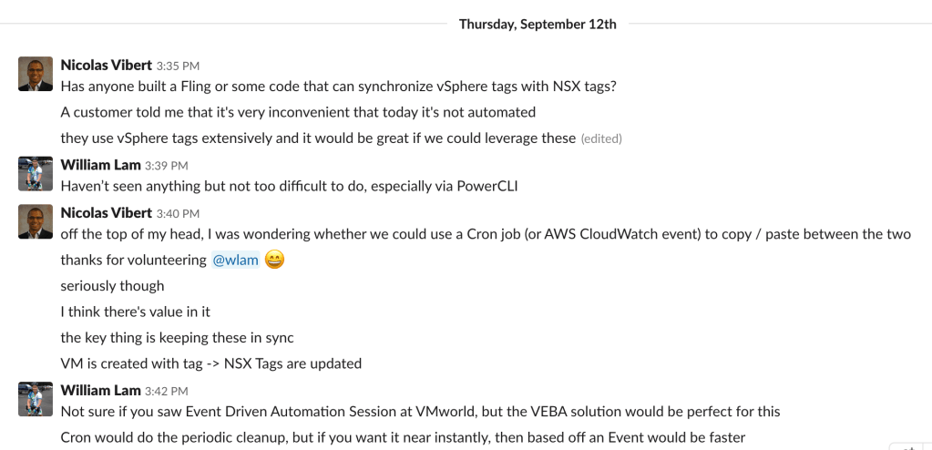 That feature isn’t on the near term roadmap as far as I am aware so I thought I’d create some kind of scripts that would regularly check tags and synchronise them. But an internal Slack conversation with William Lam helped me come up with a much better model: