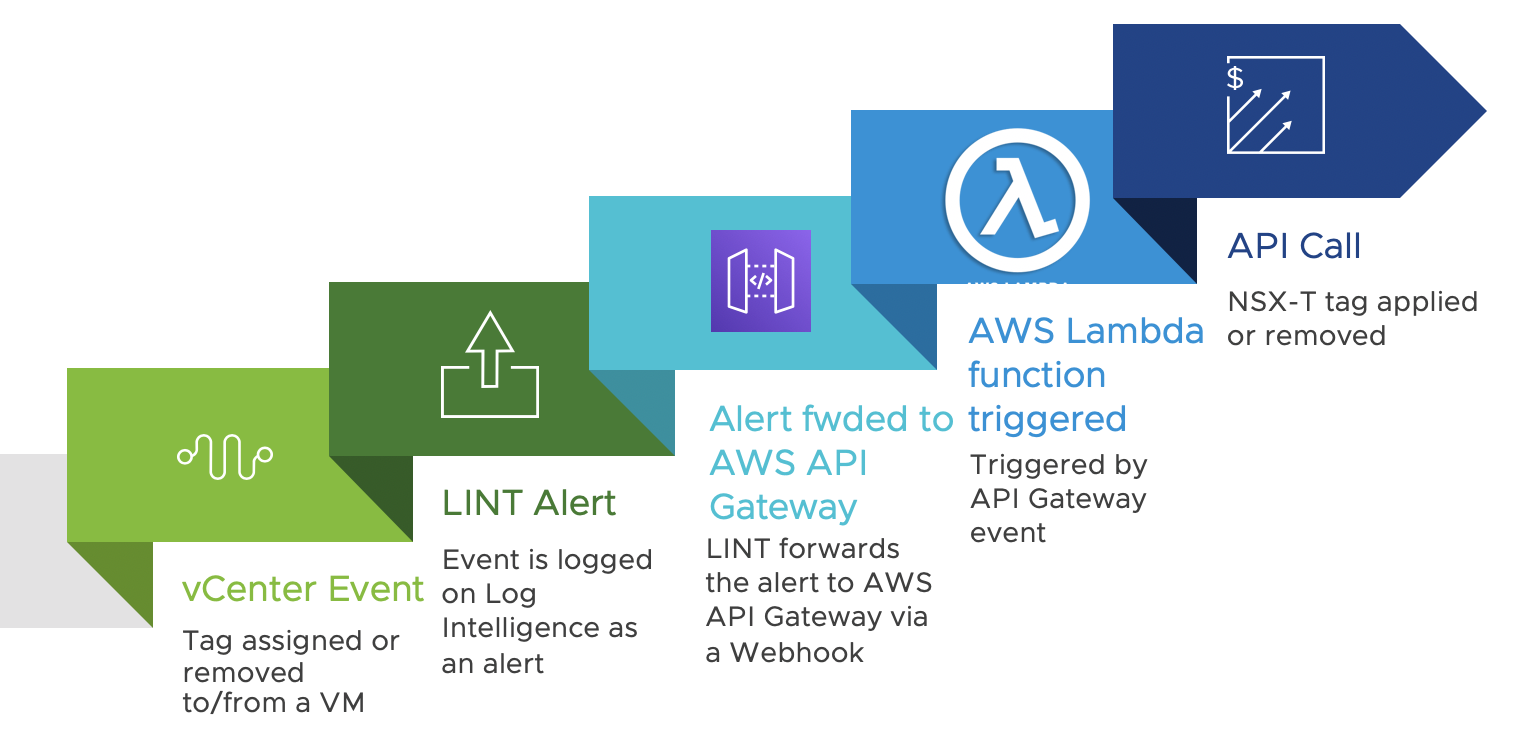 This post will walk-through how to synchronize VMware vSphere Tags with NSX security tags via vRealize Log Insight Cloud and AWS Lambda Python scripts.