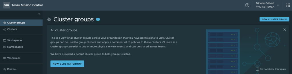 When you log on to Tanzu Mission Control, one of the first things you might want to do is to attach your Kubernetes cluster a cluster group: