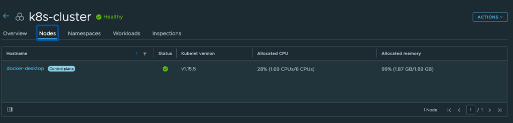 I can see the number of nodes – as I am using Docker Desktop on my Mac, it only supports a single node: