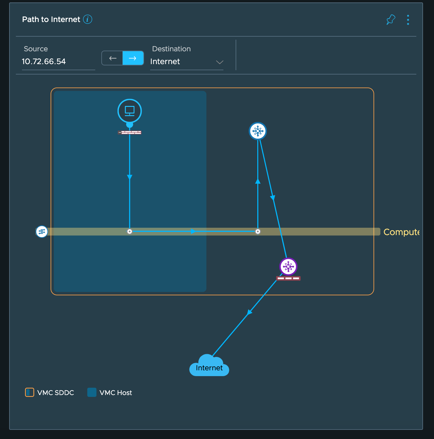 It would also show you the path the traffic would take to reach the Internet from a VM.