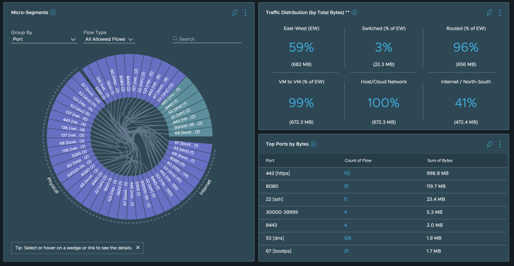 For VMware Cloud on AWS, it can show you the traffic from a VM to a VM in the same SDDC: