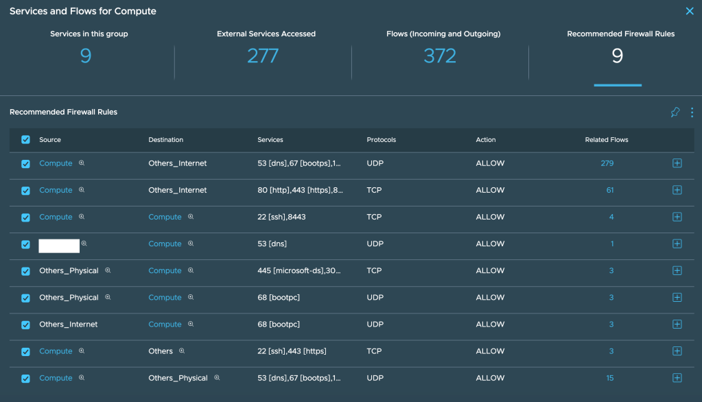 In summary, you could easily inspect the traffic flows from your virtual machines and based on the traffic observed, vRNI would automatically recommend security rules.