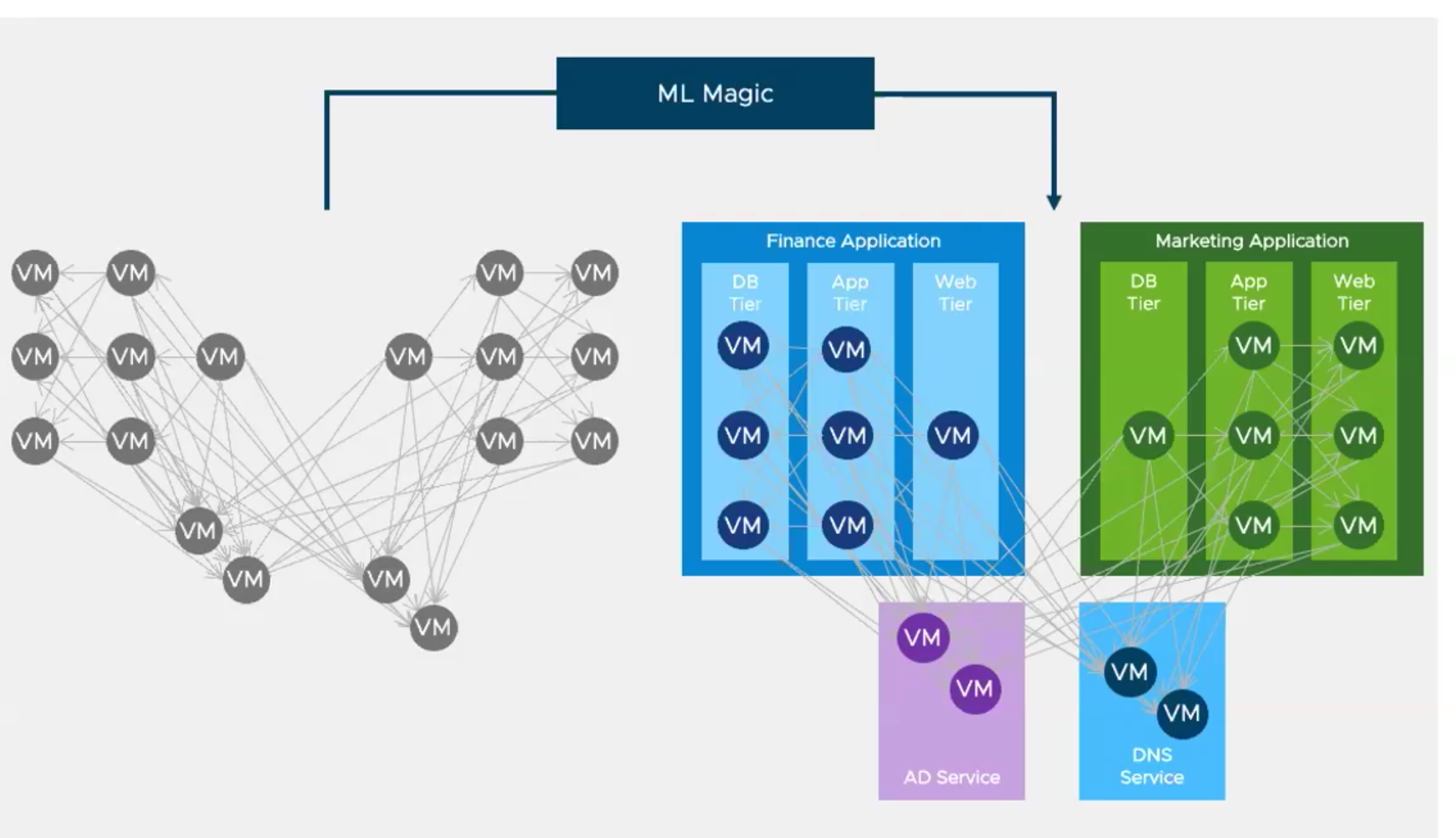 Once all the workloads have been grouped together, you can analyse the network flows and see if most flows are within the group or if they have dependencies with another tier/app/group of workloads.