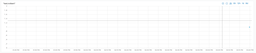 On the Wavefront dashboard, if I look for the test.nvibert metric, I can see the 1.0 value at 3.20pm: