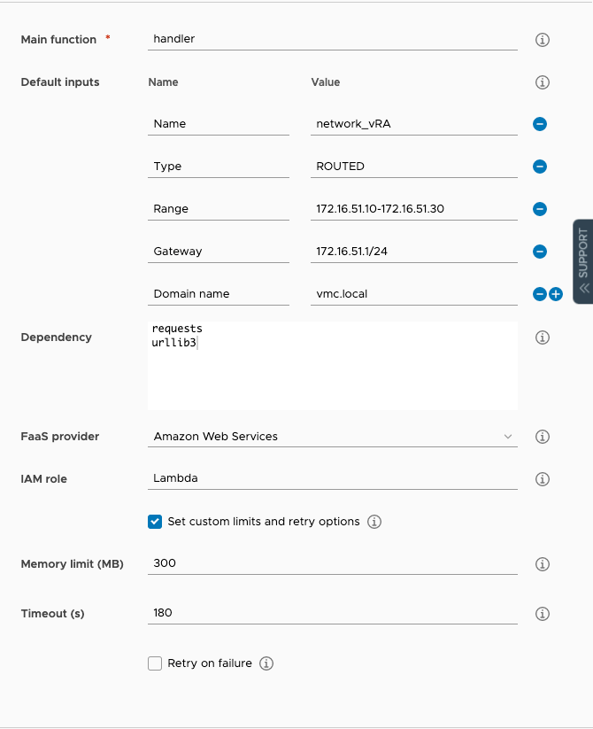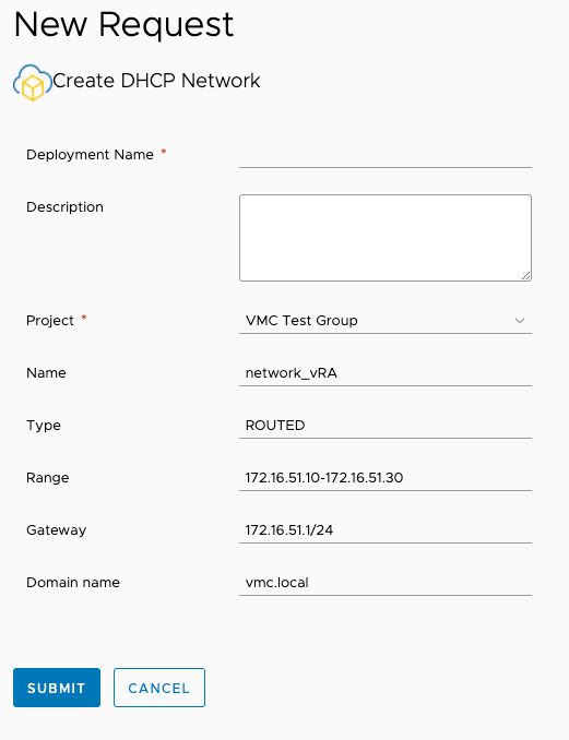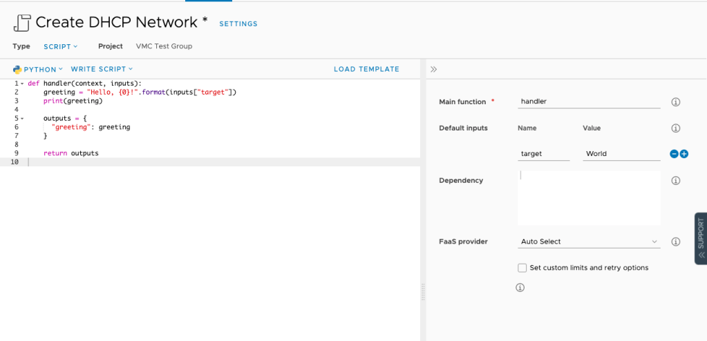 For example, here is how we can create a VMC network from a vRA Catalog. We’ll be using some Python but you don’t actually have to know any Python to use it.