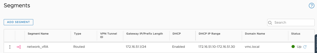 newSDDC = newSDDCnetworks(proxy, session_token, display_name, gateway_address, dhcp_range, domain_name, routing_type)