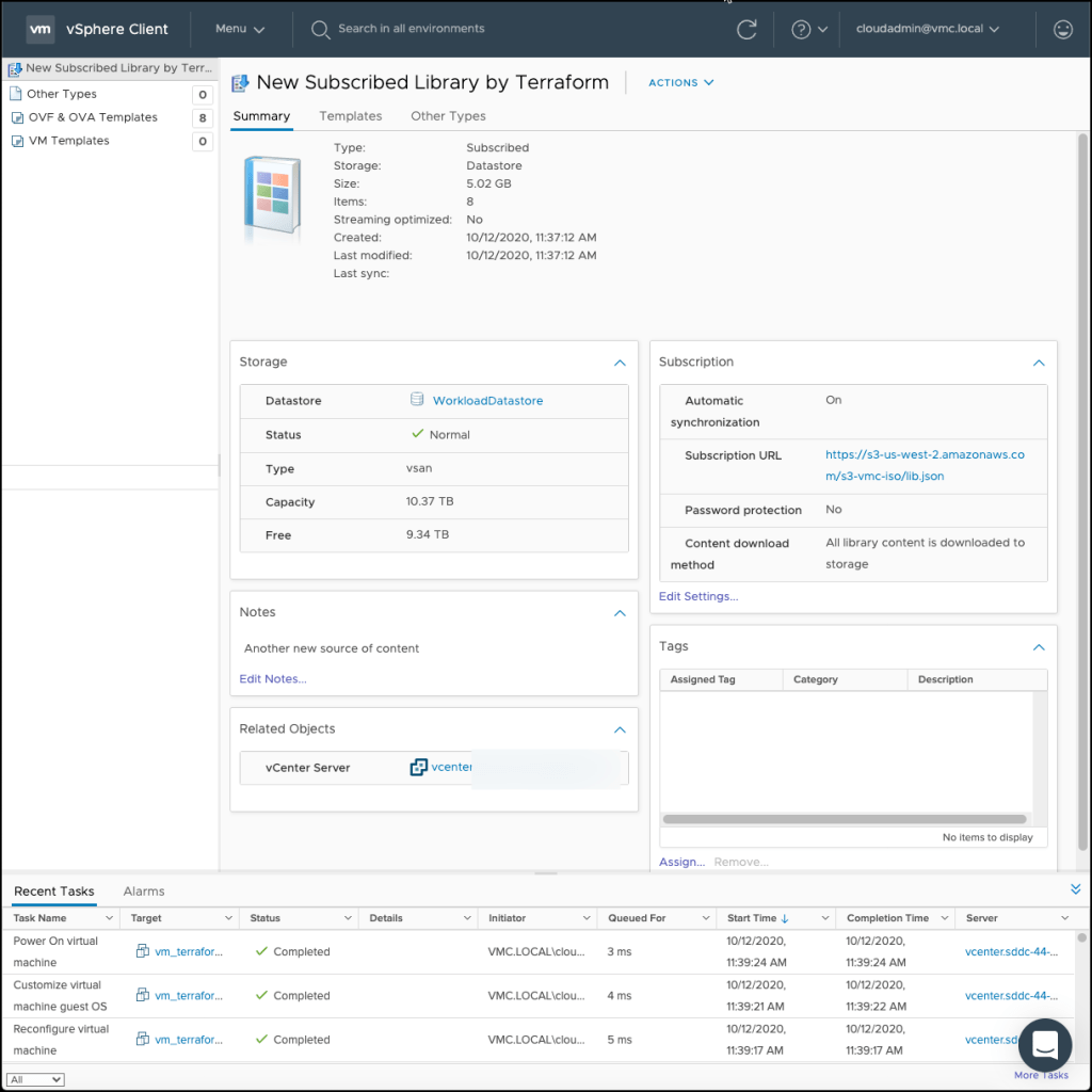 - Add an item to the content library you are creating through Terraform or, using a data block, add an item to an existing content library