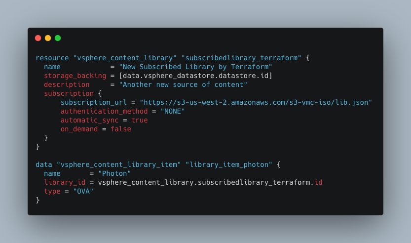 resource "vsphere_content_library" "subscribedlibrary_terraform" {