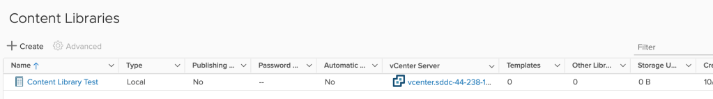 As mentioned before, Terraform creates an empty library. Be aware of the little gotcha here: you have to specify the datastore in square brackets (it’s an array of datastores).