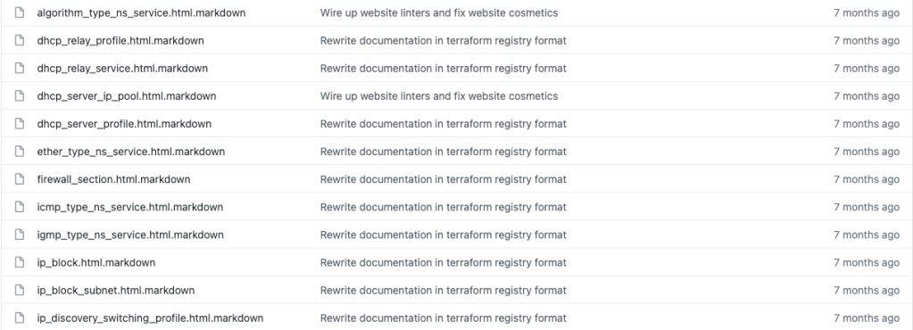 Not only that but even existing providers, like the NSX-T one, were not quite complete. That’s to be expected – we only have limited engineering resources – but still, it would be nice to provide feature parity between what is possible on the UI or over the ‘raw’ APIs and between the Terraform provider.