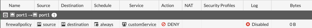 You’re ready to go and build some stuff with Terraform, for example, some security rules/policies. Security rules are pretty straight-forward on Fortinet – define your source, destination and services (i.e. UDP/TCP ports) and refer to them in your security policy: