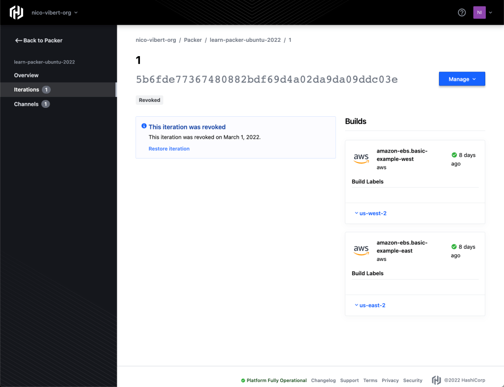HCP Packer has been built to address these challenges. I won’t go through in details what I talked about in the first post but essentially when you use Packer to build an image, you can record its status and output in HCP Packer (for example, the AWS AMI ID).