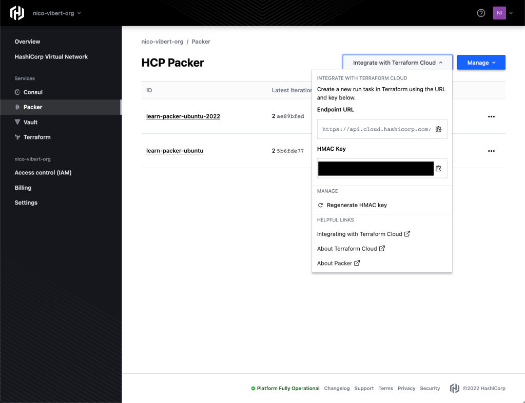To set this up, you’re first going to need some details from HCP Packer to authenticate to it: